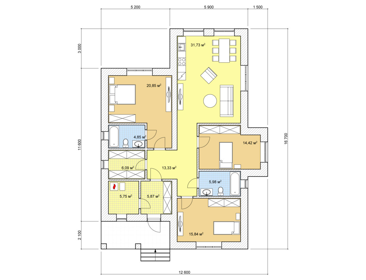 Одноэтажный дом 100кв. м
